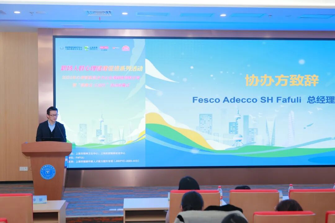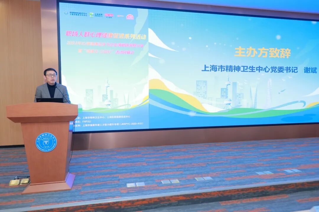近年来职场心理健康受各界重视,会议上,上海市精神卫生中心党委书记谢斌、外企德科上海公司FAFULI总经理董栋、上海拓新健康促进中心副理事长司心里等出席并致辞。